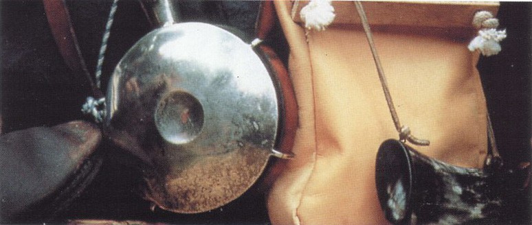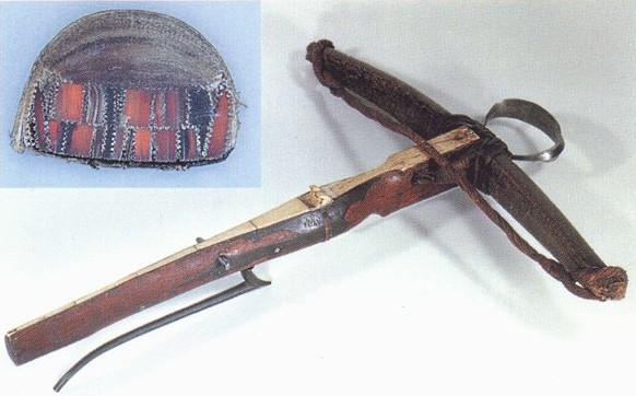 Запас пороха хранили в пороховнице из металла, тыквы или рога. Мешок с пулями, фитилем и, возможно, формой для литья нуль, так как стандартных калибров в то время еще не существовало. В конце XV в. на страницах хроники Шиллинга изображены аркебузиры в бою. Они применяют патронные сумки с двумя отделениями. В одном отделении хранятся пули, а в другом - заранее сделанные навески пороха.