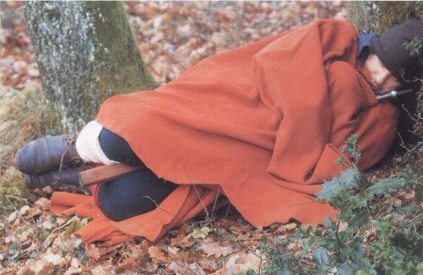 (A) С гобелена из Байё. Символически показано мародерство на поле боя. В действительности, только сумасшедший согласился бы надеть кольчугу на голое тело.