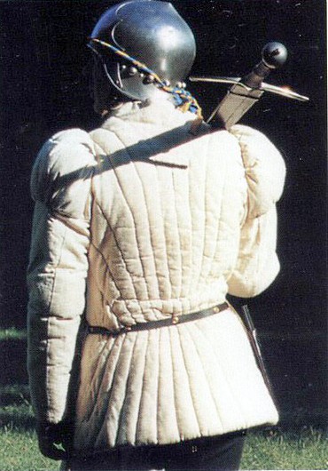 В 1444 г. мы читаем о кожаном пурпуанте с шестью слоями ткани, который носили под доспехами. Сэр Джон Пастон писал домой 3 июня 1473 г. о «новом одеянии из белой камки, которое он перешил в мягкий доспех».