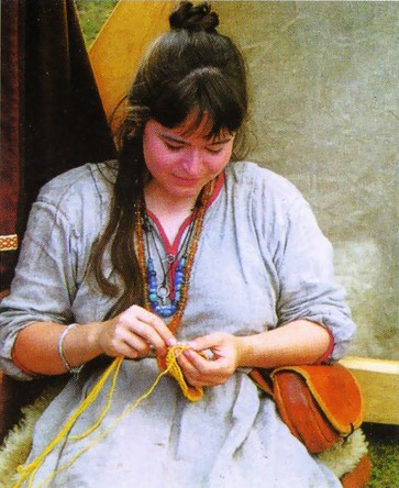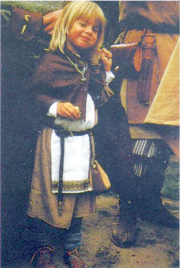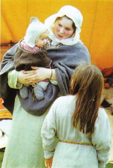 Вполне вероятно, что эта девочка сама напряла пряжи, из которой пошили ее покрашенную в серый цвет рубаху. Прясть было делом детей. Она без сомнения уже умеет готовить и печь, а также уже освоила первые навыки ткачества. Ее родители наверняка уже присмотрели паренька из влиятельного семейства, за которого выдадут ее замуж, как только она чуть подрастет.
