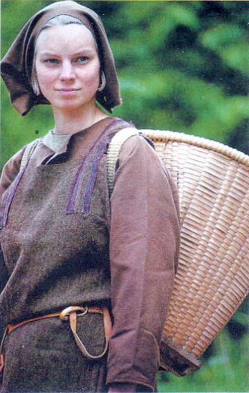 Основной одеждой мужчин и женщин в период раннего средневековья была рубаха прямого покроя с рукавами. В подол рубахи могли вставлять клинья, иногда из ткани контрастного цвета. Женская рубаха по длине достигала лодыжки. Рукава женской рубахи могли быть полной длинны или укороченные. Встречались и рубахи без рукавов. Поверх рубахи женщины обычно носили верхнюю одежду, представлявшую собой нечто среднее между фартуком и сарафаном (hangerock).