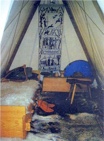 Статус члена семьи определялся удаленностью его спального места от центрального очага. Мебель состояла из сундуков, скамей и табуретов. Постель мужа и жены могла находиться в чулане, но чаще приватность обеспечивала простая занавеска. Для освещения использовали масляные лампы или просто фитили, плавающие в жиру. Позднее появились сальные свечи. Богатые дома освещались восковыми свечами.
