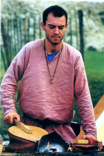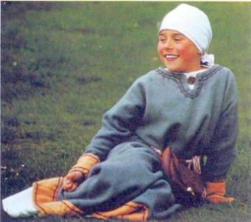 Канюшон, реконструированный по находкам из Хайтабю и ряда других мест, служил идеальным дополнением к рубахе в плохую погоду. Oн закрывал шею, голову и плечи, отлично защищая от непогоды. Капюшон такого покроя носили на протяжении нескольких столетий по всей Европе. Встречались капюшоны с подкладкой и внутренней набивкой. |